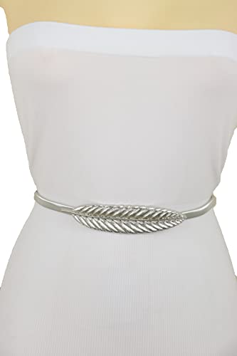 Women Silver Elastic Fashion Belt - Hip High Waist Skinny Waistband Metal Leaf Size S M L 6