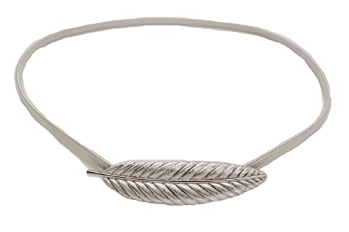 More information about Women Silver Elastic Fashion Belt - Hip High Waist Skinny Waistband Metal Leaf Size S M L