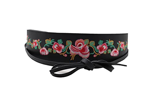More information about Women Black Tie Fashion Belt - Wrap Around Faux Leather Wide Waistband Flower S M