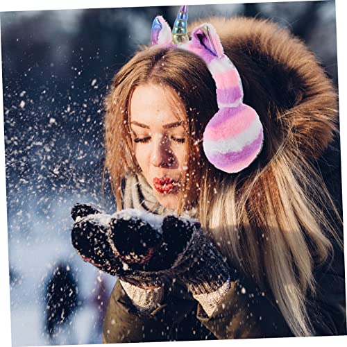 NOLITOY Unicorn Design Winter Earmuffs for Boys and Girls Plush Ear Covers Foldable Feature Warmth Protection for Outdoor Activities 1
