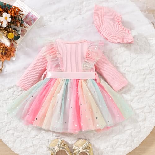 • Unique Mixed Color Design: Classic crew neck romper dress with special rainbow color print. Ruffle shoulder & soft for babies. It looks especially sweet on fall & winter! Every detail is designed for the babies, giving baby free space to grow up