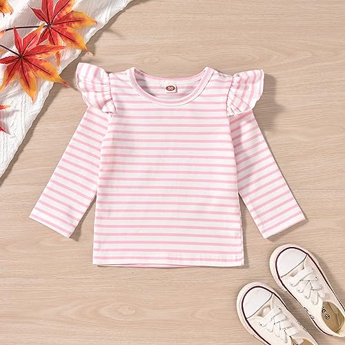 HINTINA 2PCS Baby Girls Clothes Toddler Jumpsuit Rompers Adjustable Ripped Jeans Overalls Set with Long Sleeve Stripe T-Shirt 3