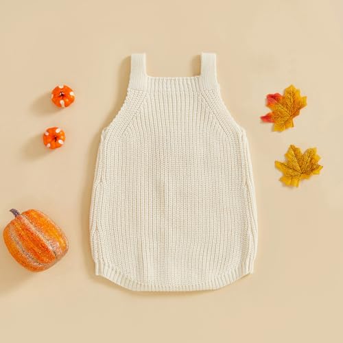 • Feature: Baby girl crochet knit romper, sleeveless, pumpkin embroidery, square neck, chunky knit, snap closure at the crotch, solid color, one piece jumpsuit