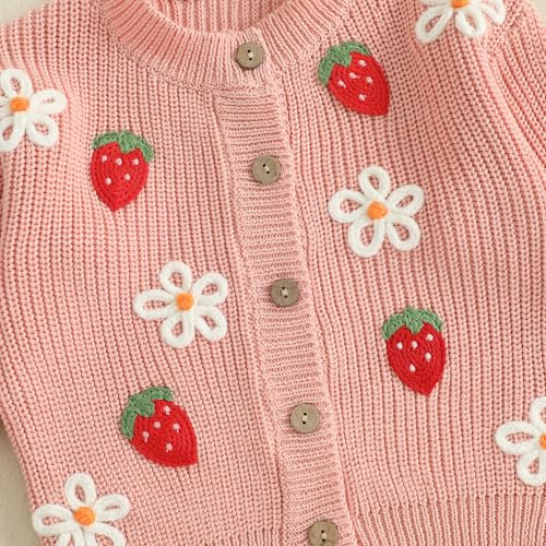 Baby Girl Sweater Cardigan Strawberry Floral Embroidery Chunky Cable Knit Button Jacket Toddler Fall Winter Clothes 6