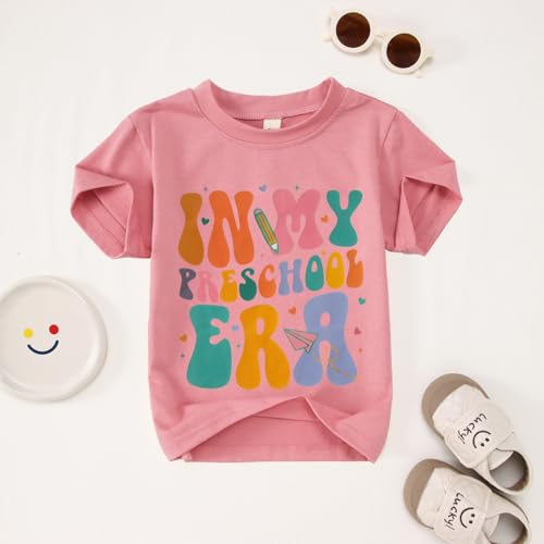 in My Preschool Era Shirt Toddler Girl First Day of School T-Shirt Cute Back to School Tee Short Sleeve Summer Tops 4