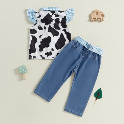 Emmababy Toddler Cowgirl Denim Outfit Cow Print Plaid Shirt Button Down Top Pants Set Ripped Jeans Western Baby Girl Clothes 7