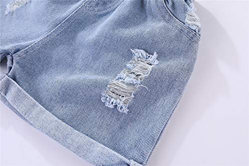 • The denim shorts have a distressed look, giving them a trendy edge that will make your child stand out in a crowd