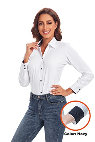 HOT ! WARHORSEE Womens Button Down Shirt Long Sleeve Work Dress Shirts, V Neck Easy Care Stretchy Business Casual Blouses for Women