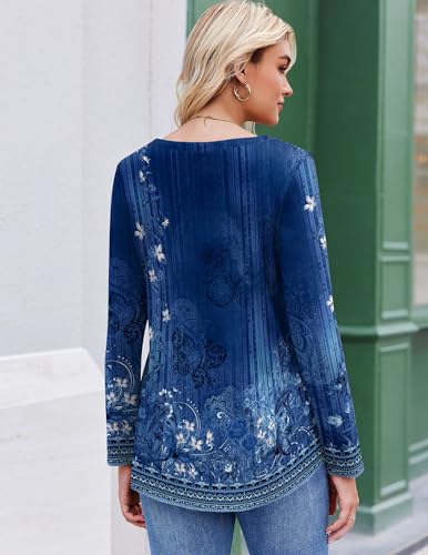 Zeagoo Womens Long Sleeve Tops V-Neck Loose Fit Shirts Pleated Print T-Shirts Dressy Casual 2025 Tunics 2