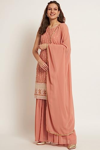 More information about Women's Georgette Embroidery Straight Kurta and Sharara Set