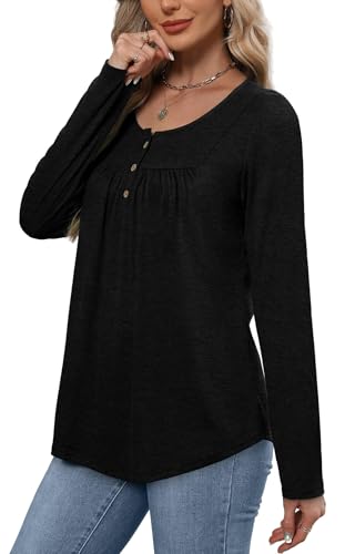 • Stylish Design: Features a classic henley neckline with button details, adding a touch of elegance and versatility. Delicate pleats at the chest add a charming and fashionable element, can better hide the small belly, you can adjust the buttons for a customized look, whether you prefer a more relaxed or slightly formal style