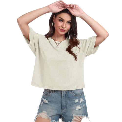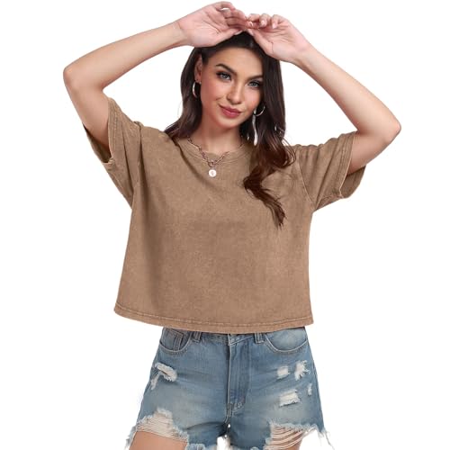 More information about Womens Crop Tops Acid Wash Short Sleeve T-Shirts Casual Round Neck Basic Tees Baggy Summer Shirts