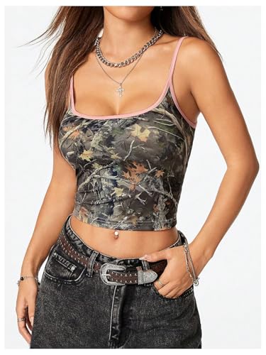 HOT ! Women's Y2k Vintage Camo Print Camisole Spaghetti Strap Scoop Neck Cropped Cami Tank