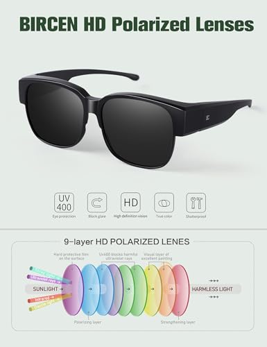 BIRCEN Polarized Fit Over Sunglasses: Wear Over Glasses Sunglasses Wrap Around Fitover Shades for Men Women UV Protection 6