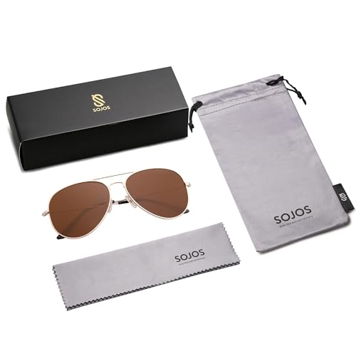 HOT ! SOJOS Classic Aviator Polarized Sunglasses for Men Women Vintage Retro Style,Gold/Brown,62mm