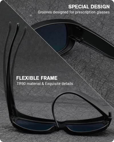 • [FIT OVER GLASSES] Designed for those who wear prescription & reading glasses. The groove of the temple can fit most rectangle & oval glasses. You can enjoy wearing glasses and sunglasses at the same time.