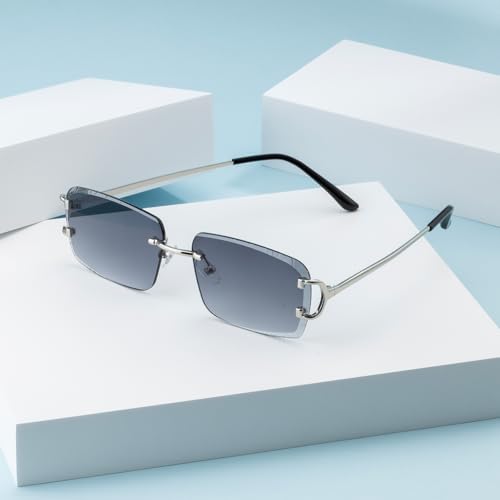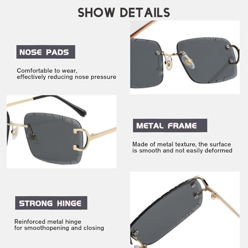 • STYLISH DESIGN: The frameless metal frame sunglasses feature a sleek, modern design with clean lines, perfect for a sophisticated and trendy look.