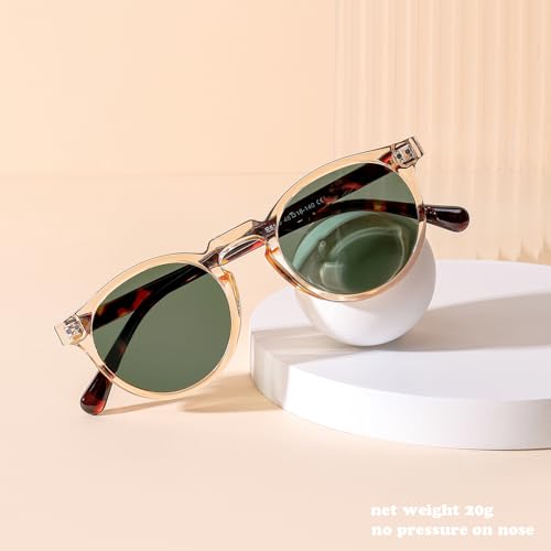 Gleyemor Fashion Polarized Round Sunglasses for Men Women Retro Vintage Acetate Frame Sunglasses 6