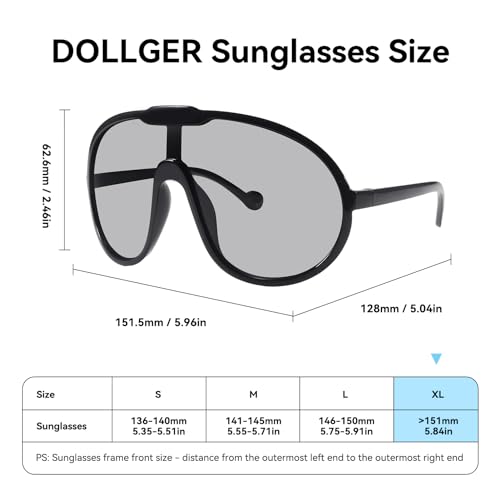 • PRODUCT DIMENSION: This oversized sunglasses dimension. Lens Width: 62mm(2.44inches) | Lens Height: 62.6mm(2.46inches) | Temple Length: 128mm(5.04inches) | Nose Bridge: 17mm(0.67inches)