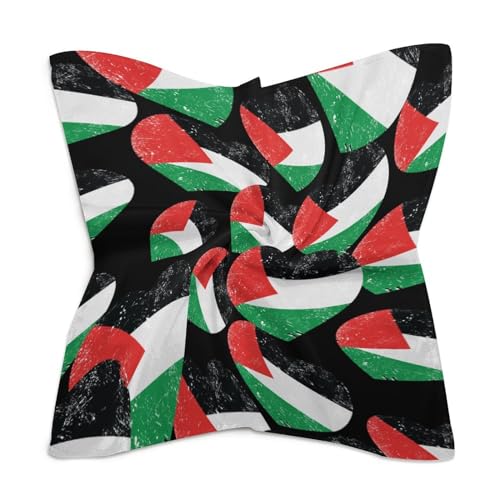 Palestine Retro Heart Flag Print Bandana Square Scarf Silk Feeling Headwear Hair Kerchief Wrap for Women 7