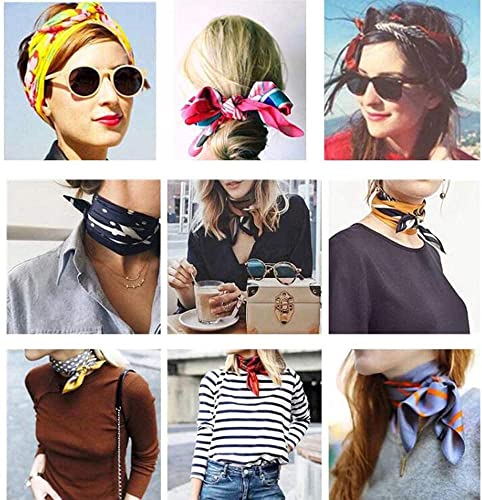 10PCS Women Girls Square Satin Scarves Fashion Printed Neckerchief Necktie Shawl Headscarves Hairband Wristband (Color Random) 5
