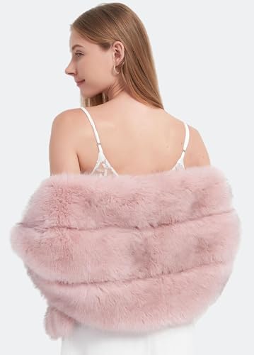 DJBM Women Luxury Faux Fur PU Leather Shawl Winter Fluffy Cover Up Wraps for Wedding Bridal Party 5