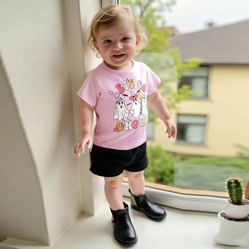 • CASUAL DESIGN: Halloween baby clothes with ghost letter prints to add a touch of fun; Short sleeves, round neck; Toddler girls shirts are not only stylish and comfortable, but also durable and easy to care for