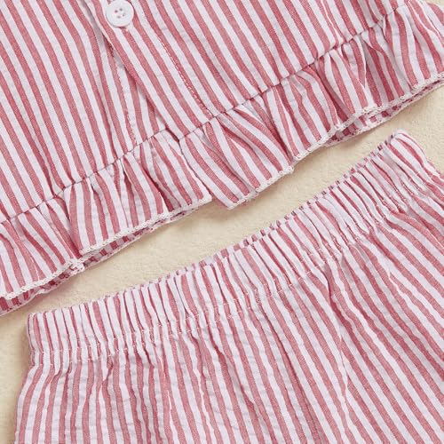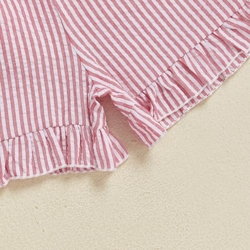 • CASUAL DESIGN: Toddler fourth of July summer pajamas with striped print; Boys girls pajama shirt with American Flag embroidery, short sleeves, ruffle design, lapel collar, front button closure; Pajama shorts with elastic waist for easy fit, simple and stylish bubble cotton stripes pajamas set, toddler 4th of July pajamas, little kids patriotic pajamas
