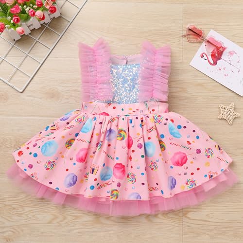 • First Birthday Gifts for Little Girls: Adorable colorful Strawberry Donut Candy Easter Day Alice cosplay dress for toddler girls, Super cute sleeveless ruffled shoulder straps square neck romper wedding flower girl dresses summer beach holiday sundress, baby girls' special occasion dresses suitable for first birthday party cake smash photo prop toddler birthday decorations pageant baptism christening baby shower outfit. Flutter sleeves bowknot tutu dress for formal Photography Photo Prop