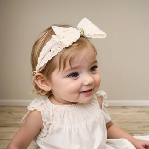 HOT ! Bethynas Baby White Lace Elastic Headband Toddler Hair Bow Baptism Christening Hairband Infant Soft Fabric Birthday Party Headwrap Accessory for Newborn Little Girl (Off-white 8, Elastic)