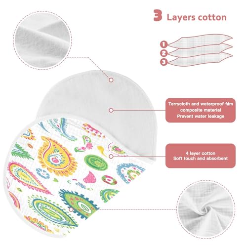 Colorful Paisley Designs Burp Cloths Cotton Baby Washcloths,Large 22x11in Burping Cloth Absorbent and Soft for Newborn Baby Boys and Girls,1 Pack 4
