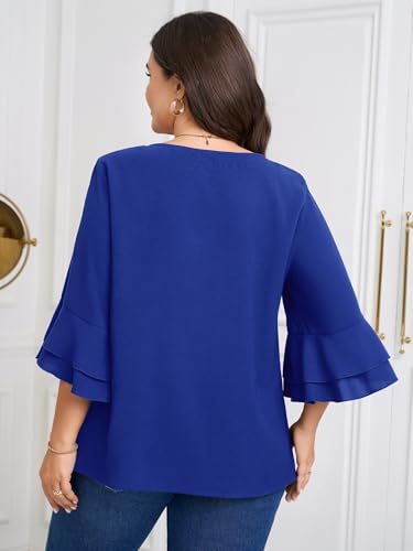 SCOMCHIC Plus Size Blouses for Women Dressy Casual 3/4 Tiered Bell Sleeve V Neck Elegant Shirts Work Tunic Tops 3