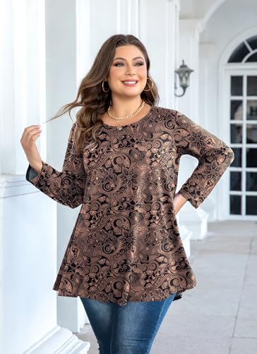 Tunic Tops for Women Plus Size 3/4 Sleeve Crew Neck Swing Flare Loose T-Shirt Blouses to Wear with Leggings 6