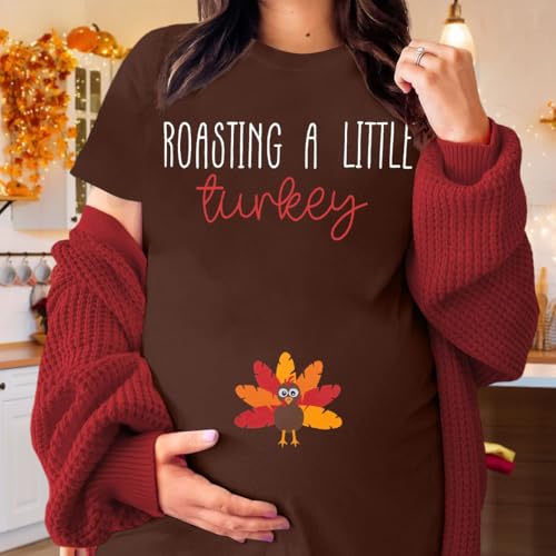 FASHGL Thanksgiving Pregnancy Shirt Women Funny Roasting a Little Turkey T-Shirt Cute Pregnancy Announcement Tee Tops 5