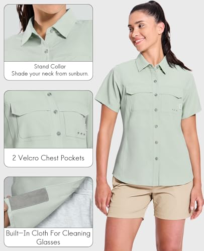 Haimont Women's UPF 50+ Sun Protection Button Down Fishing Hiking Travel Shirts Short Sleeve Quick Dry Shirt with Pockets 6