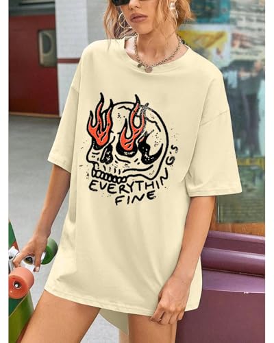 HOT ! Everything is Fine Shirt Women Halloween Shirts Trendy Oversized T Shirt Vintage Skeleton Graphic Tees Rock Hippie Top