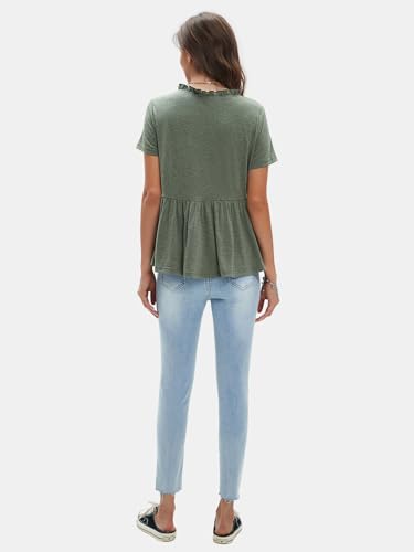 EXLURA Women's Summer Crop Babydoll Peplum Tops Cute V Neck Short Sleeve Business Casual Trendy T Shirts Beach Vacation 2025 2