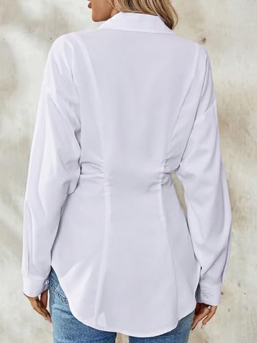 SUNNOW Women's Elegant Long Sleeve Vacation Shirt Button Down Blouse Gathered Waist Lightweight Travel Tops 5