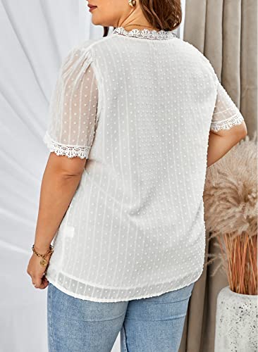 Eytino Womens Plus Size Tops Casual Summer Short Sleeve V Neck Lace Crochet Chiffon Blouses Shirts(1X-5X) 6