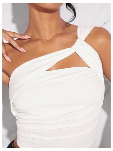SOLY HUX Women's One Shoulder Tank Top Sleeveless Cut Out Ruched Going Out Fitted Crop Tops 6