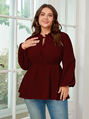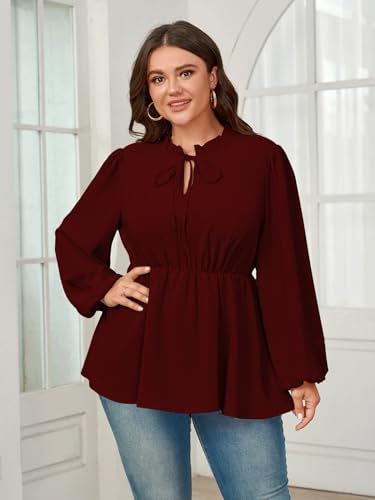 Womens Plus Size Blouse Tops Long Sleeve Tie Front Work Tops Dressy Casual Flowy Ruffle Peplum Tops for Women 6