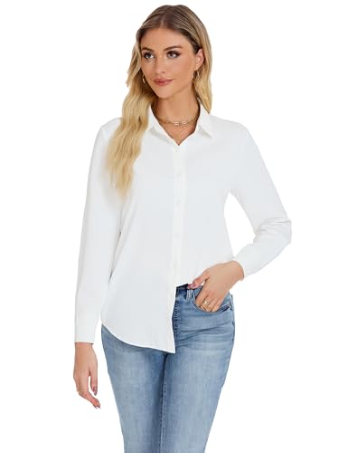 HOT ! JTD Women's Button Down Shirts Long Sleeve Collared Blouses Wrinkle-Free Work Office Casual Chiffon Top