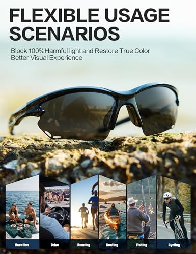 • UV400 Polarized Protection:These sunglasses feature state-of-the-art UV400 polarized lenses that shield your eyes from 100% of harmful UVA and UVB rays. By cutting through harsh glare and reducing eye strain, they offer unparalleled visual clarity and color enhancement, making every outdoor adventure safer and more enjoyable. Perfect for reflecting surfaces like water, asphalt, or snow.