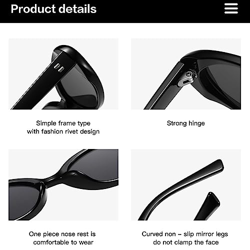 • CLASSIC RETRO DESIGN - 90s sunglasses oval have been very popular among the public.As a kind of vintage sunglasses, the small oval sunglasses looks more trendy and elegant. Though the oval frame is in skinny narrow slim style, the classic black sunglasses are made of premium polycarbonate - durable and ultralight, no pressure and comfortable to wear.