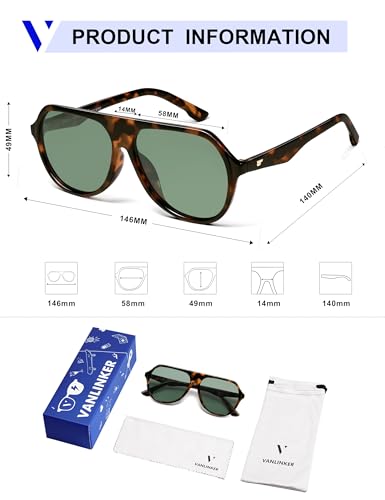 HOT ! VANLINKER Retro Oversized Polarized Aviator Sunglasses for Women Men Vintage 70s Big Square Aviators VL9851