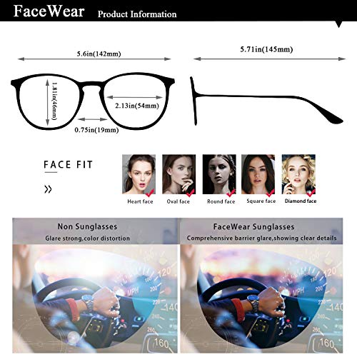 • UV400 PROTECTION - 100% UV400 protection coating, blocks 100% harmful UVA & UVB Rays. Purchase from Facewear with confidence that the sunglasses will take good care of your vision protecting your eyes from harmful sun rays, giving you full protections when driving or outdoor activities.