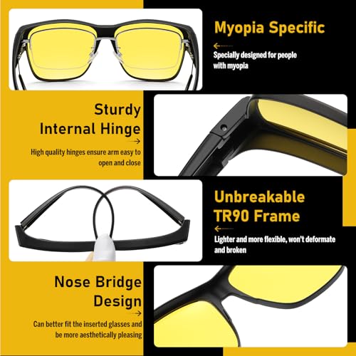 • ADVANCED NIGHT VISION LENSES: Our night driving glasses feature polarized yellow lenses with an anti-reflective coating, reducing glare from headlights and streetlights. Enhance your night vision clarity and reduce eye fatigue for a safer driving experience, making them an essential accessory for nighttime journeys
