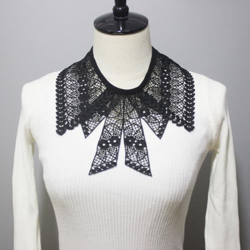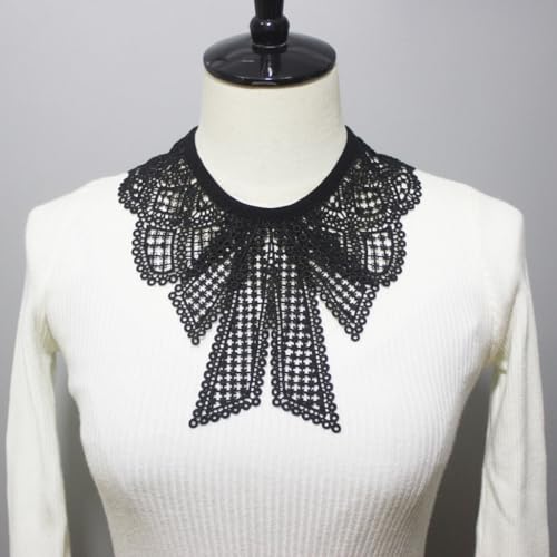 • Crafted from quality polyester fabric, this false collar features an intricate lace with a delicate bows, offering both comfort and style.