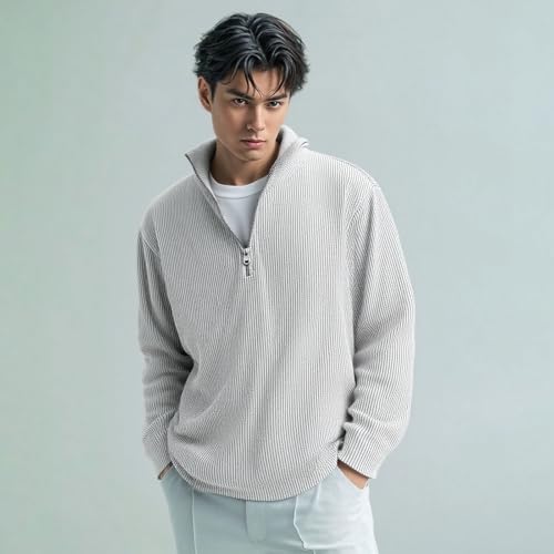 Mokaloha Mens Shirts - Mokaloha Shirts for Men, Men's Simple Casual Ribbed Stand Collar Zipper Long Sleeve T-Shirt 3