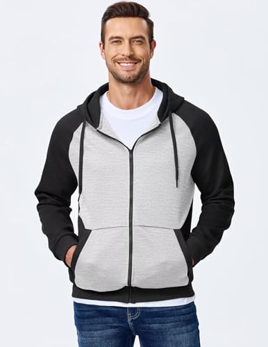Men's Full-Zip Hoodies Sweatshirts Color Block Long Sleeve Casual Pullover Shirt with Kanga Pocket 6